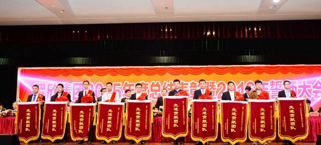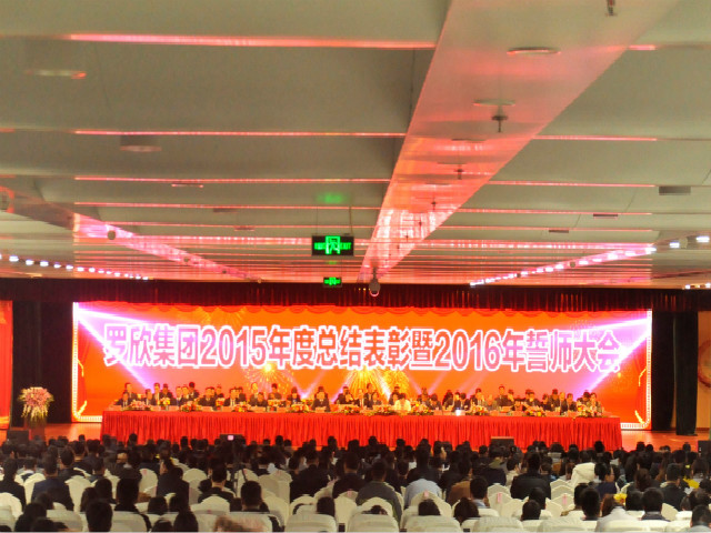 圖為羅欣集團(tuán)隆重召開(kāi)2015年度總結(jié)表彰暨2016年誓師大會(huì)的場(chǎng)景
