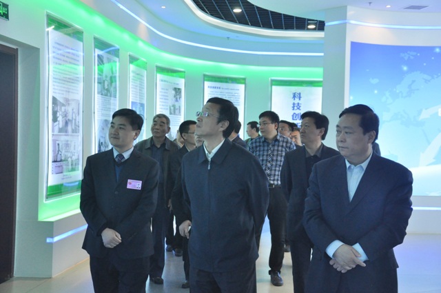 上圖為臨沂市國(guó)土資源局局長(zhǎng)李彥普(前排右二)參觀我公司展廳時(shí)的情景