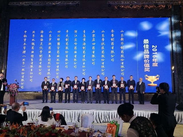 2016年12月1日,第七屆醫(yī)藥觀察家新銳論壇暨深圳恒合傳媒上市答謝會(huì)在昆明召開(kāi),經(jīng)深圳恒合傳媒隆重推薦,中國(guó)醫(yī)藥企業(yè)管理協(xié)會(huì)、全國(guó)衛(wèi)生產(chǎn)業(yè)企業(yè)管理協(xié)會(huì)、中國(guó)醫(yī)藥物資協(xié)會(huì)、全國(guó)醫(yī)藥精英俱樂(lè)部評(píng)定,山東羅欣藥業(yè)集團(tuán)股份有限公司被評(píng)選為2016年度“最佳品牌價(jià)值獎(jiǎng)”。