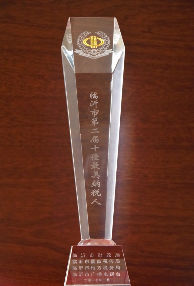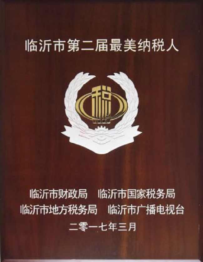 熱烈慶祝公司榮獲臨沂市“十佳最美納稅人”稱號(2017/5/4)