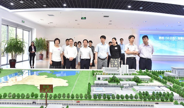 上圖為省食品藥品監督管理局副巡視員史國生(前排左二)一行參觀我公司展廳時的情景