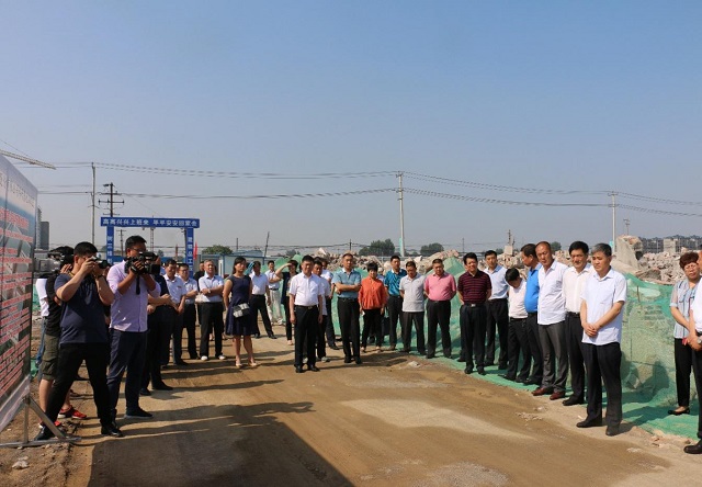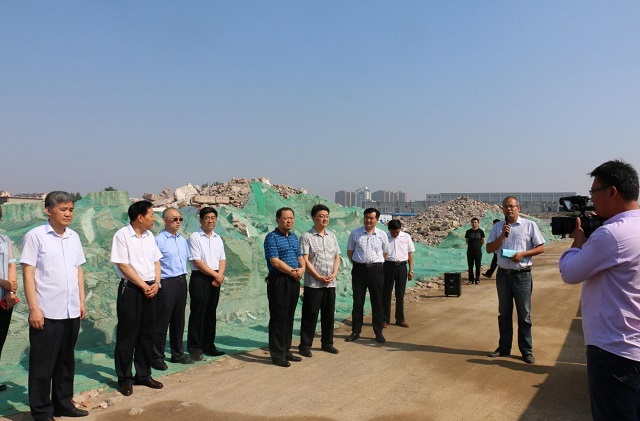 上圖為羅莊區(qū)人大常委會(huì)主任魏九成一行參觀集團(tuán)創(chuàng)新產(chǎn)業(yè)園施工現(xiàn)場時(shí)的情景