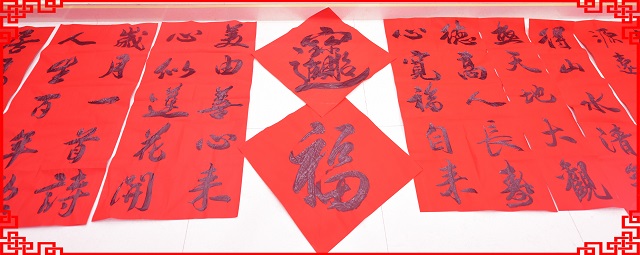 “百縣千村”書法文化下鄉(xiāng)活動(dòng),是文化惠民、文化為民、文化樂民的重要舉措,它多角度、多層面地滿足廣大基層群眾日益增長(zhǎng)的書法文化要求,讓廣大基層群眾共享書法藝術(shù)之美。透過書法家們一副副字體不一、內(nèi)容豐富的對(duì)聯(lián),我們深深地感受到了中華文化的博大精深,貼上春聯(lián)尤其是手寫的春聯(lián)才有過年的氣氛,才能顯出年味。