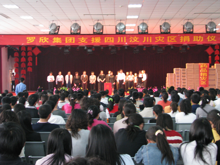 同時,公司倡議全體員工向汶川地震災區(qū)支援捐款,于2008年5月16日下午3:00在公司管理中心四樓禮堂舉行羅欣藥業(yè)支援四川汶川地震災區(qū)捐助儀式,臨沂市紅十字會、臨沂市食品藥品監(jiān)督管理局、羅莊區(qū)人民政府、羅莊區(qū)衛(wèi)生局、羅莊區(qū)食品藥品監(jiān)督管理局等單位領導參加了捐助儀式,醫(yī)藥經濟報社、臨沂市電視臺、羅莊區(qū)電視臺等媒體記者也參加了此次捐助儀式。公司員工積極捐款,不到十分鐘時間,合計捐款人民幣106590元。公司董事長劉保起先生向紅十字會移交了捐助的藥品,并代表公司員工向紅十字會移交捐助的現(xiàn)金;市紅十字會謝軍會長向公司董事長劉保起先生移交了捐贈證書。