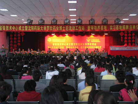 2008年10月23日上午,山東羅欣藥業(yè)股份有限公司在公司四樓禮堂隆重舉行“省級(jí)技術(shù)中心成立暨沈陽(yáng)藥科大學(xué)羅欣藥業(yè)博士后流動(dòng)工作站、沈陽(yáng)藥科大學(xué)羅欣藥業(yè)教學(xué)培養(yǎng)基地、沈陽(yáng)藥科大學(xué)羅欣藥業(yè)實(shí)習(xí)基地揭牌慶典儀式”。沈陽(yáng)藥科大學(xué)校長(zhǎng)吳春福,臨沂市委常委、市委秘書長(zhǎng)李峰,市政府黨組成員市長(zhǎng)助理宋法亮,沈陽(yáng)藥科大學(xué)教務(wù)處處長(zhǎng)夏煥章,沈陽(yáng)藥科大學(xué)國(guó)際合作研究中心主任高峰,臨沂市食品藥品監(jiān)督管理局局長(zhǎng)崔增久,臨沂市衛(wèi)生局副局長(zhǎng)劉建廣,臨沂市科技局副局長(zhǎng)趙世荀,臨沂市經(jīng)貿(mào)委副主任李儉,全國(guó)人大代表、臨沂市人大常委會(huì)委員、臨沂市人民醫(yī)院黨委書記、院長(zhǎng)尹傳貴,羅莊區(qū)委書記王行華,羅莊區(qū)委副書記、區(qū)長(zhǎng)姜玉鵬,羅莊區(qū)人大主任山長(zhǎng)青,羅莊區(qū)政協(xié)主席高文堂,羅莊區(qū)經(jīng)貿(mào)局局長(zhǎng)謝成琦,羅莊區(qū)科技局局長(zhǎng)郭士林,羅莊街道黨工委書記張連勝等領(lǐng)導(dǎo)參加了慶典儀式。參加這次揭牌慶典的還有羅欣公司員工1000余人。同時(shí)這次慶典儀式,得到了各大新聞媒體的大力支持。