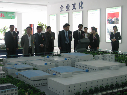 上圖為揭牌慶典儀式結(jié)束后沈陽(yáng)藥科大學(xué)校長(zhǎng)吳春福(前排左四),臨沂市委常委、市委秘書長(zhǎng)李峰(前排左二),市政府黨組成員、市長(zhǎng)助理宋法亮(前排左三)等領(lǐng)導(dǎo)參觀公司展廳時(shí)的情景