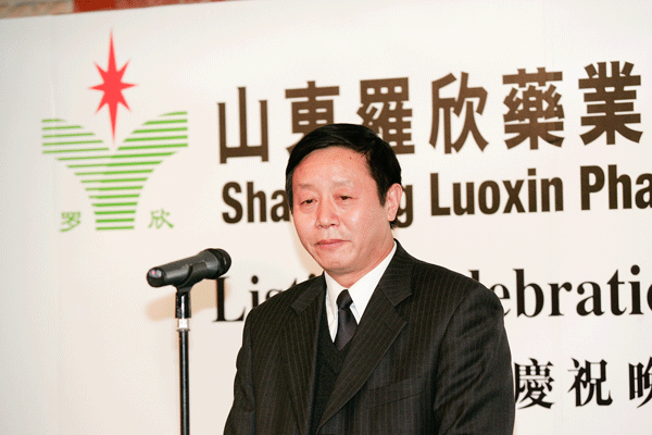 山東省食品藥品監(jiān)督管理局公培獻(xiàn)局長(zhǎng)發(fā)言祝賀羅欣藥業(yè)的成功上市