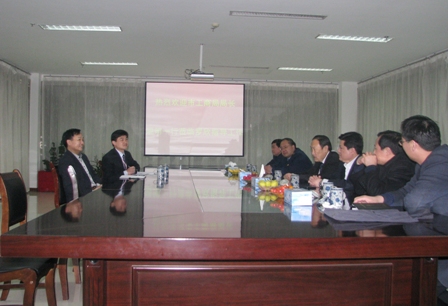 上圖為臨沂市工商局局長姚明(右四)一行在三樓會議室 與集團(tuán)董事長劉保起會談時的情景