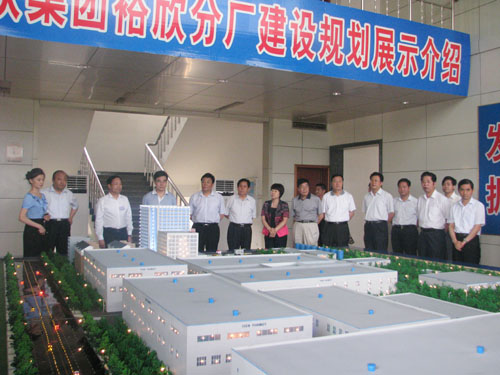 與會(huì)領(lǐng)導(dǎo)一行視察了集團(tuán)裕欣分廠廠區(qū)建設(shè),觀看了裕欣分廠建設(shè)規(guī)劃沙盤模型,并聽(tīng)取了集團(tuán)“十二五”發(fā)展規(guī)劃的匯報(bào),對(duì)公司近年來(lái)的發(fā)展和取得的成就給予了充分肯定和高度評(píng)價(jià)。