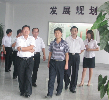 上圖為省委組織部研究室副主任徐紅國(前排左一)一行參觀公司展廳時的情景