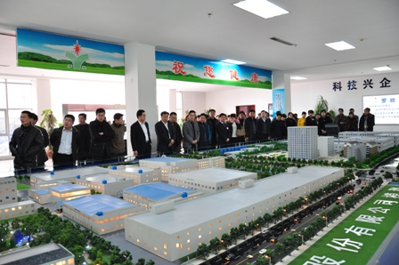 上圖為市委黨校第三十一期鄉鎮干部進修班學員一行觀看公司布局沙盤模型的情景