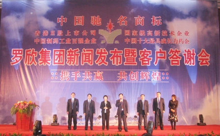 集團借此次全國藥品交易會召開之際,在南昌前湖迎賓館隆重舉行“新聞發布暨客戶答謝會”。來自全國各地的供應商、經銷商、醫藥界同仁、各新聞媒體記者共600余人參加了發布會。會上,公司發布了羅欣科研平臺大幅提升、裕欣分廠建設情況及多個新產品上市等新聞,并對廣大客戶表達了對羅欣一貫支持的感謝之情。