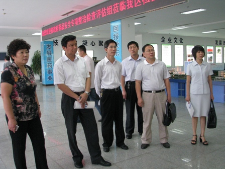 上圖為省政府藥品安全專(zhuān)項(xiàng)整治檢查評(píng)估組參觀檢查時(shí)的情景
