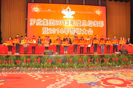 圖為羅欣集團(tuán)2013年度總結(jié)表彰暨2014年誓師大會(huì)的場(chǎng)景