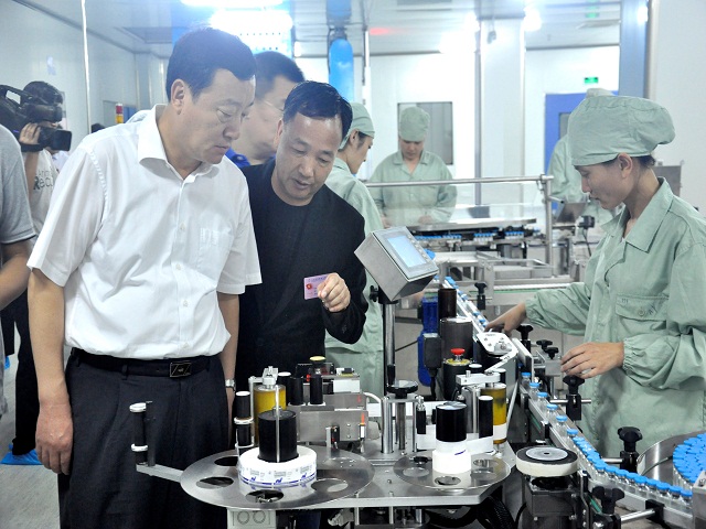 上圖為山東省副省長(zhǎng)張務(wù)鋒一行參觀公司生產(chǎn)車間時(shí)情景