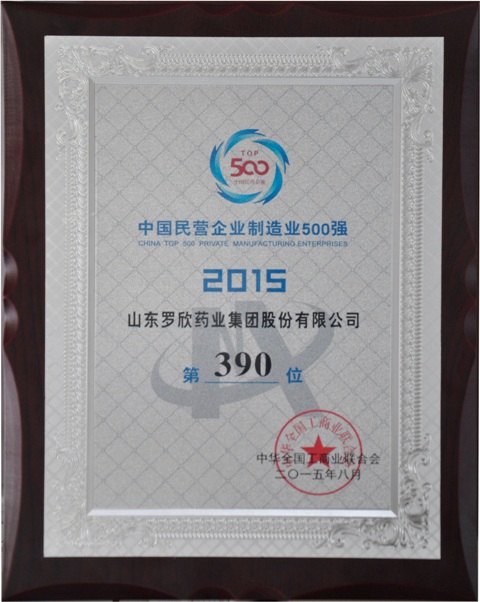10月15日上午,臨沂市工商聯(lián)“2015年民營企業(yè)500強”、“2015年民營企業(yè)制造業(yè)500強”授牌儀式在臨沂市行政中心舉行,會上宣布了由中華全國工商業(yè)聯(lián)合會權(quán)威發(fā)布的2015年民營企業(yè)500強及中國民營企業(yè)制造業(yè)500強排行榜。我公司榮登中國民營企業(yè)制造業(yè)500強排行榜,位列第390位。入選此榜單顯示了我公司不俗的綜合實力和創(chuàng)新能力。