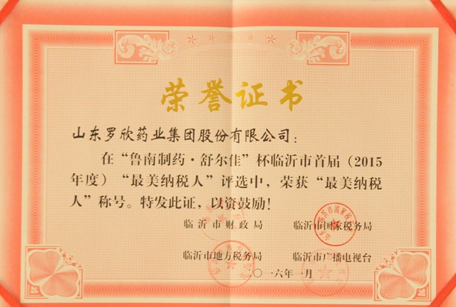 羅欣藥業(yè)堅持“回報社會”的價值觀,自覺承擔社會責任,向全社會展示了新時代納稅人誠信納稅、回饋社會的良好形象。羅欣藥業(yè)將繼續(xù)堅持“回報員工”,“回報客戶”,“回報股東”,“回報社會”,“固強企業(yè)”的價值觀,以“羅欣藥業(yè),傳遞健康”的企業(yè)理念,為國家貢獻更多的稅金,積極參與社會扶弱濟貧,為社會安置就業(yè)機會,為廣大患者治療和康復(fù)提供更多、更好的高科技藥品,為發(fā)展醫(yī)藥事業(yè),振興臨沂經(jīng)濟做出更大的貢獻。